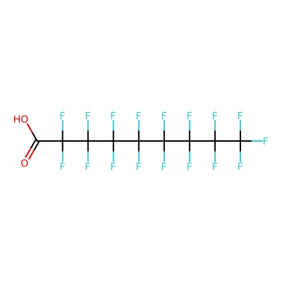 | CCSBASE_a1cd44be484ed36f7f298aa56e70256e | Perfluorononanoic acid | [M-H]- | 462.9632 | 1.07 | 167.23 | C(=O)(C(C(C(C(C(C(C(C(F)(F)F)(F)F)(F)F)(F)F)(F)F)(F)F)(F)F)(F)F)O | Organohalogen compounds | -1 | 1 | TW | polyala |