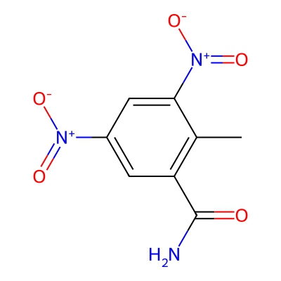 | CCSBASE_173efb945fbdd03f9b4974a7b28519d0 | Zoalene | [M-H]- | 224.0313 | 0.85 | 152.49 | CC1=C(C=C(C=C1[N+](=O)[O-])[N+](=O)[O-])C(=O)N | Benzenoids | -1 | 1 | TW | polyala | ||