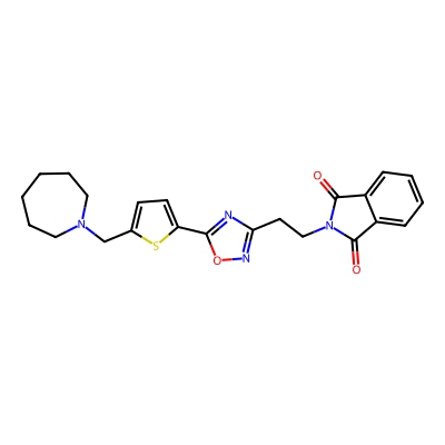 | CCSBASE_48d3e5136fcada4c3ec43d7e40220a5b | PharmaGSID_48172 | [M+H]+ | 437.1642 | 0.78 | 210.75 | C1CCCN(CC1)CC2=CC=C(S2)C3=NC(=NO3)CCN4C(=O)C5=CC=CC=C5C4=O | Organoheterocyclic compounds | 1 | 1 | TW | polyala | ||
