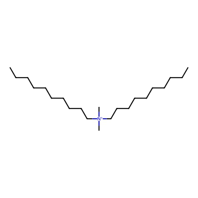 | CCSBASE_999b5840ae59fa927f3a9885a7941f55 | Didecyldimethylammonium chloride | [M]+ | 326.3781 | 0.96 | 210.57 | CCCCCCCCCC[N+](C)(C)CCCCCCCCCC | Organic nitrogen compounds | 1 | 1 | TW | polyala |