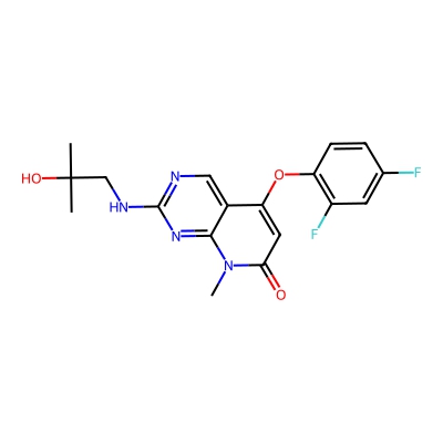 | CCSBASE_81c21946f495dd9c6e6ed3f38ed686b6 | PharmaGSID_48507 | [M+H]+ | 377.142 | 0.9 | 190.24 | CC(C)(CNC1=NC=C2C(=CC(=O)N(C2=N1)C)OC3=C(C=C(C=C3)F)F)O | Organic oxygen compounds | 1 | 1 | TW | polyala | ||