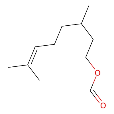 | CCSBASE_68903d637ffc4c9cc4e4acdadb33f7fe | 3,7-Dimethyloct-6-en-1-yl formate | [M-H-H2O]- | 165.1279 | 0.79 | 147.84 | CC(CCC=C(C)C)CCOC=O | Lipids and lipid-like molecules | -1 | 1 | TW | polyala | ||