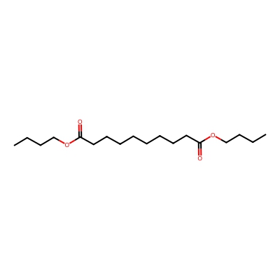 | CCSBASE_416fadc3e356d0694b20d43abdb3deed | Dibutyl decanedioate | [M-H]- | 313.2384 | 0.93 | 178.27 | CCCCOC(=O)CCCCCCCCC(=O)OCCCC | Lipids and lipid-like molecules | -1 | 1 | TW | polyala | ||