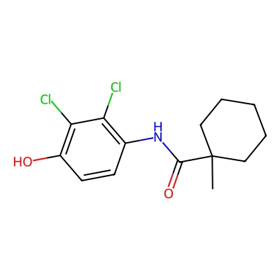 | CCSBASE_63bd78dba57d7310f380757a9401f219 | Fenhexamid | [M-H]- | 300.0563 | 0.86 | 172.12 | CC1(CCCCC1)C(=O)NC2=C(C(=C(C=C2)O)Cl)Cl | Benzenoids | -1 | 1 | TW | polyala | ||