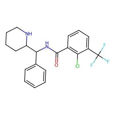 | CCSBASE_f1123709bb68de6eaef7ead92123c76a | SSR504734 | [M+H]+ | 397.1289 | 0.82 | 188.53 | C1CCNC(C1)C(C2=CC=CC=C2)NC(=O)C3=C(C(=CC=C3)C(F)(F)F)Cl | Benzenoids | 1 | 1 | TW | polyala | ||