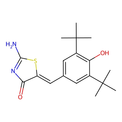 | CCSBASE_fdcb1afec68f6d0589a0b5d73083c6bb | Darbufelone mesylate | [M+Na]+ | 355.145 | 0.98 | 204.65 | CC(C)(C)C1=CC(=CC(=C1O)C(C)(C)C)C=C2C(=O)N=C(S2)N | Benzenoids | 1 | 1 | TW | polyala | ||
