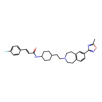 | CCSBASE_4f56fe7f92127b8cd2d1cc398673e72d | SB413217A | [M+FA-H]- | 547.2726 | 0.76 | 244.31 | CC1=NC(=NO1)C2=CC3=C(CCN(CC3)CCC4CCC(CC4)NC(=O)C=CC5=CC=C(C=C5)F)C=C2 | Phenylpropanoids and polyketides | -1 | 1 | TW | polyala | ||