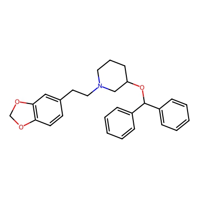 | CCSBASE_859eb6a478e3848f0925892ed729010c | Zamifenacin | [M+H]+ | 416.222 | 0.83 | 200.96 | C1CC(CN(C1)CCC2=CC3=C(C=C2)OCO3)OC(C4=CC=CC=C4)C5=CC=CC=C5 | Benzenoids | 1 | 1 | TW | polyala | ||