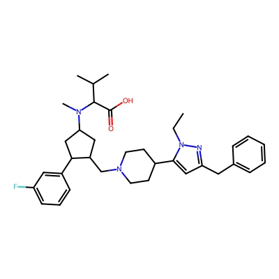 | CCSBASE_ad9b899a786c31afe16afc07defbac87 | MK-578 | [M+H]+ | 575.3756 | 0.78 | 243.93 | CCN1C(=CC(=N1)CC2=CC=CC=C2)C3CCN(CC3)CC4CC(CC4C5=CC(=CC=C5)F)N(C)C(C(C)C)C(=O)O | Organic acids and derivatives | 1 | 1 | TW | polyala | ||