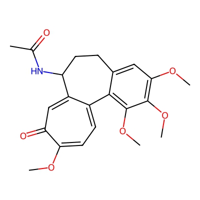 | CCSBASE_4d1cc774f91a3c2515d5ab170b023d30 | Colchicine | [M+H-H2O]+ | 382.165 | 0.82 | 188.05 | CC(=O)NC1CCC2=CC(=C(C(=C2C3=CC=C(C(=O)C=C13)OC)OC)OC)OC | Hydrocarbon derivatives | 1 | 1 | TW | polyala | ||