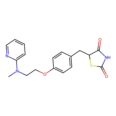 | CCSBASE_720871d0cb3245da971720971b7558dd | Rosiglitazone maleate | [M+H]+ | 358.122 | 0.77 | 174.49 | CN(CCOC1=CC=C(C=C1)CC2C(=O)NC(=O)S2)C3=CC=CC=N3 | Benzenoids | 1 | 1 | TW | polyala | ||