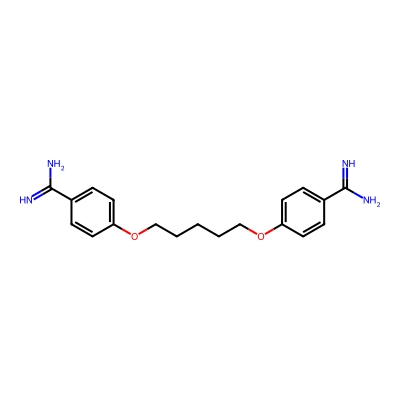 | CCSBASE_db095eb0e7396ffdd9d4e88be7759692 | Pentamidine isethionate | [M+H]+ | 341.1972 | 0.71 | 174.06 | C1=CC(=CC=C1C(=N)N)OCCCCCOC2=CC=C(C=C2)C(=N)N | Benzenoids | 1 | 1 | TW | polyala | ||