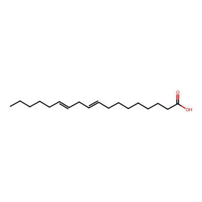 | CCSBASE_ecd69f727bb101987258d13eee098ddd | Linoleic acid | [M-H]- | 279.2329 | 0.91 | 178.48 | CCCCCC=CCC=CCCCCCCCC(=O)O | Lipids and lipid-like molecules | -1 | 1 | TW | polyala | ||