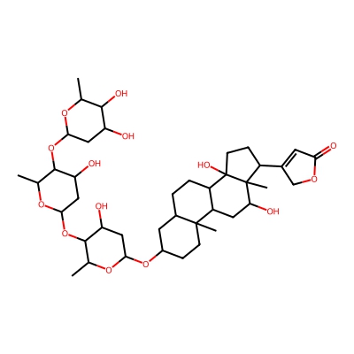 | CCSBASE_de00b423c5b536f4d4928b042d50aee3 | Digoxin | [M-H]- | 779.4223 | 0.79 | 268.18 | CC1C(C(CC(O1)OC2C(OC(CC2O)OC3C(OC(CC3O)OC4CCC5(C(C4)CCC6C5CC(C7(C6(CCC7C8=CC(=O)OC8)O)C)O)C)C)C)O)O | Lipids and lipid-like molecules | -1 | 1 | TW | polyala | ||