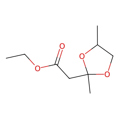 | CCSBASE_94832d5d1115fa4d43802657cf70c7aa | Ethyl 2,4-dimethyl-1,3-dioxolane-2-acetate | [M-H]- | 187.0976 | 0.76 | 144.08 | CCOC(=O)CC1(OCC(O1)C)C | Lipids and lipid-like molecules | -1 | 1 | TW | polyala | ||