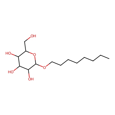 | CCSBASE_a41054575467a7304c35e7c1553bde0d | Octyl beta-D-glucopyranoside | [M-H]- | 291.1813 | 0.81 | 181.68 | CCCCCCCCOC1C(C(C(C(O1)CO)O)O)O | Lipids and lipid-like molecules | -1 | 1 | TW | polyala | ||