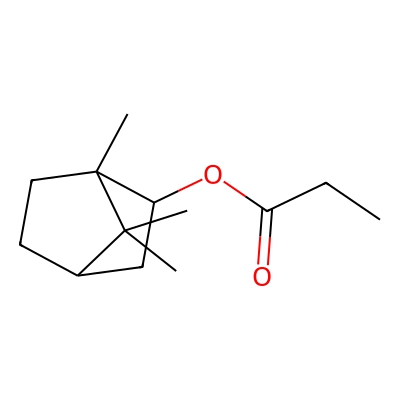 | CCSBASE_8bed0d36a6b941b349315b44b50520fb | Isobornyl propanoate | [M-H]- | 209.1547 | 0.83 | 159.02 | CCC(=O)OC1CC2CCC1(C2(C)C)C | Lipids and lipid-like molecules | -1 | 1 | TW | polyala | ||
