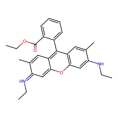 | CCSBASE_9508a6ac9079624ed322766c6af45d72 | Rhodamine 6G | [M]+ | 443.2329 | 0.84 | 216.05 | CCNC1=CC2=C(C=C1C)C(=C3C=C(C(=[NH+]CC)C=C3O2)C)C4=CC=CC=C4C(=O)OCC | Organoheterocyclic compounds | 1 | 1 | TW | polyala | ||