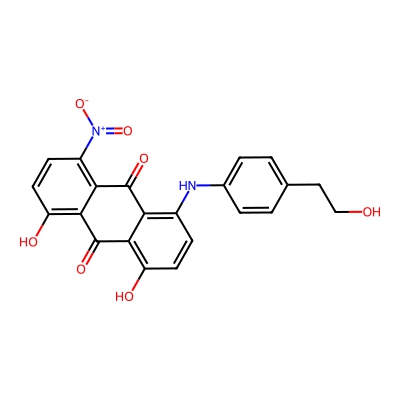 | CCSBASE_e482af11088dfb32c4ed056e1d9ce4f7 | C.I. Disperse Blue 27 | [M-H]- | 419.0885 | 0.95 | 200.07 | C1=CC(=CC=C1CCO)NC2=C3C(=C(C=C2)O)C(=O)C4=C(C=CC(=C4C3=O)[N+](=O)[O-])O | Benzenoids | -1 | 1 | TW | polyala | ||