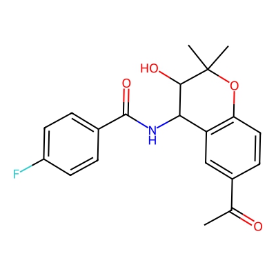 | CCSBASE_998356f0e124fd6bcedf36ddbd0a8ca5 | Carabersat | [M+K]+ | 396.1008 | 0.82 | 192.63 | CC(=O)C1=CC2=C(C=C1)OC(C(C2NC(=O)C3=CC=C(C=C3)F)O)(C)C | Organoheterocyclic compounds | 1 | 1 | TW | polyala | ||
